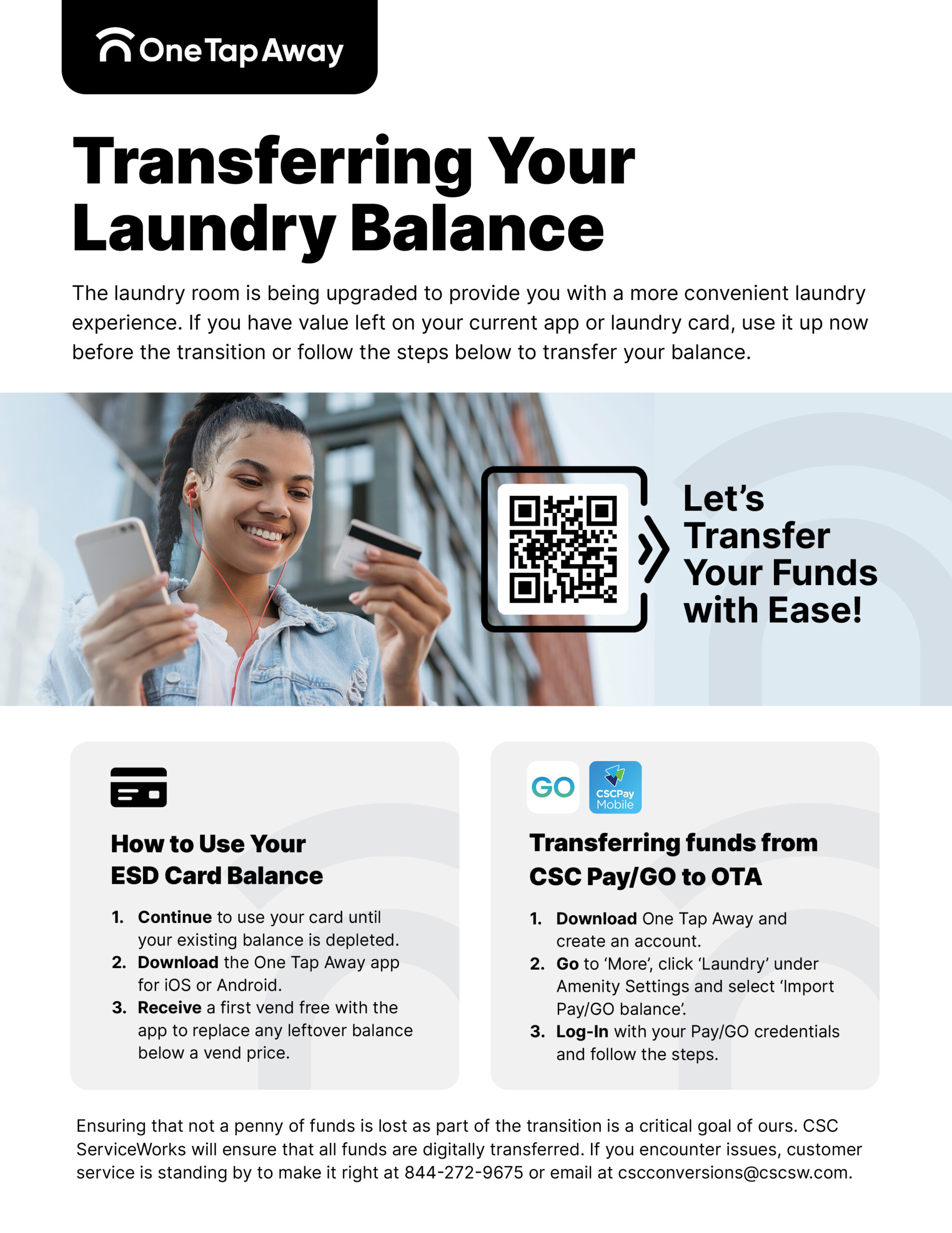 Use this flyer to inform residents/students how to use transfer or claim their balance from one of the previous payment systems (CSC GO, CSC Pay, ESD Laundry Card)