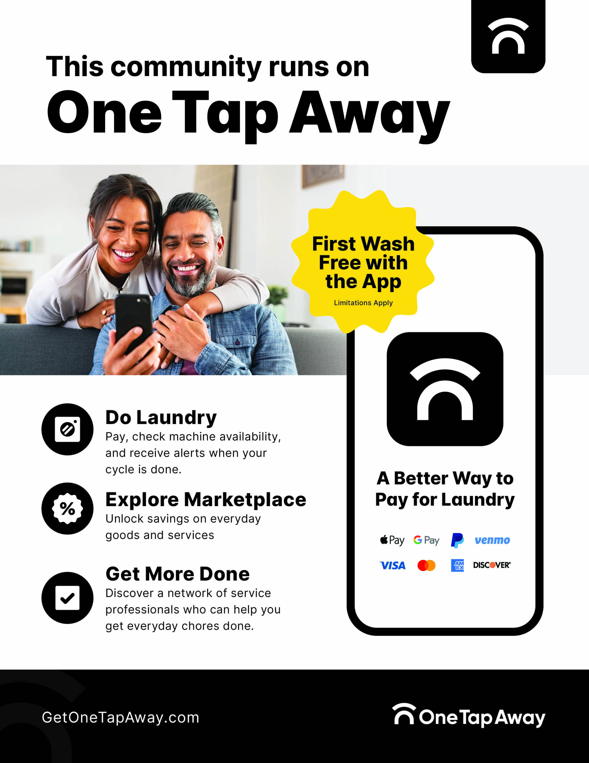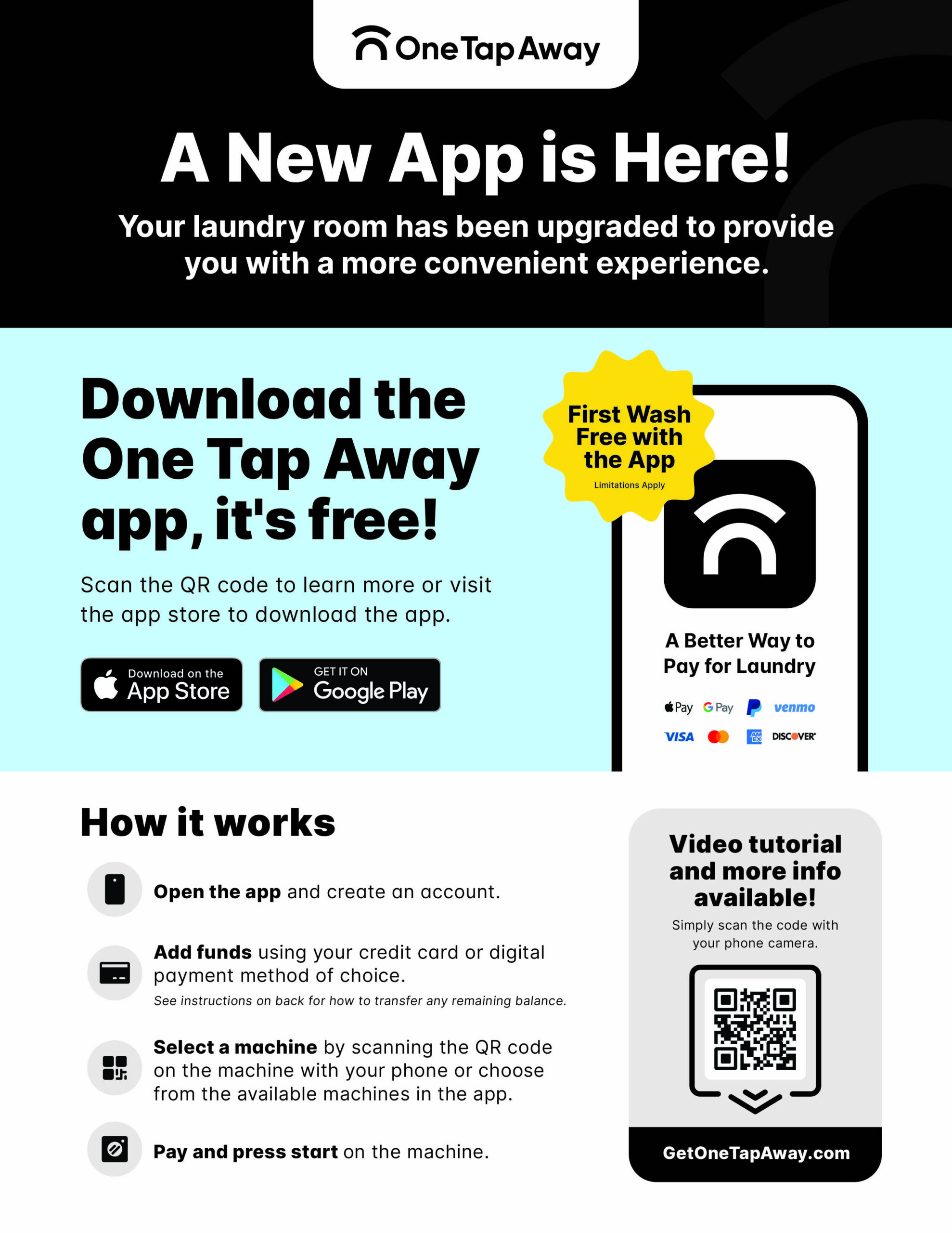 As soon as One Tap Away is added to your laundry room(s), use these materials to inform and educate residents on how to get started.Material Name